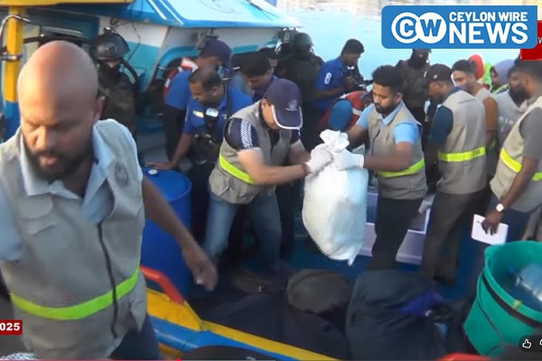 මලු 11ක අසුරා තිබූ මත්ද්රව්ය තොගය සමඟ ධීවර යාත්රාව සහ මත්ද්රව්ය තොගය අද (24) උදෑසන 6:00 ට පමණ දික්ඕවිට ධීවර වරායට ගෙන එන ලදී.