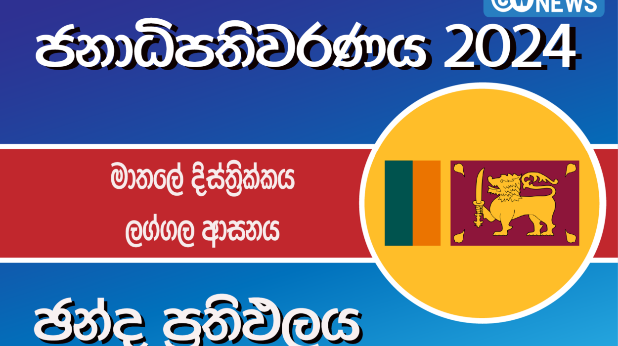 1 year ago Tags #ceylonwire මාතලේ දිස්ත්රික්කය – ලග්ගල ආසනය සජිත් ප්රේමදාස ඡන්ද 24,828 අනුර කුමාර දිසානායක – 20,838 රනිල් වික්රමසිංහ – 9,022 නාමල් රාජපක්ෂ – 2,756