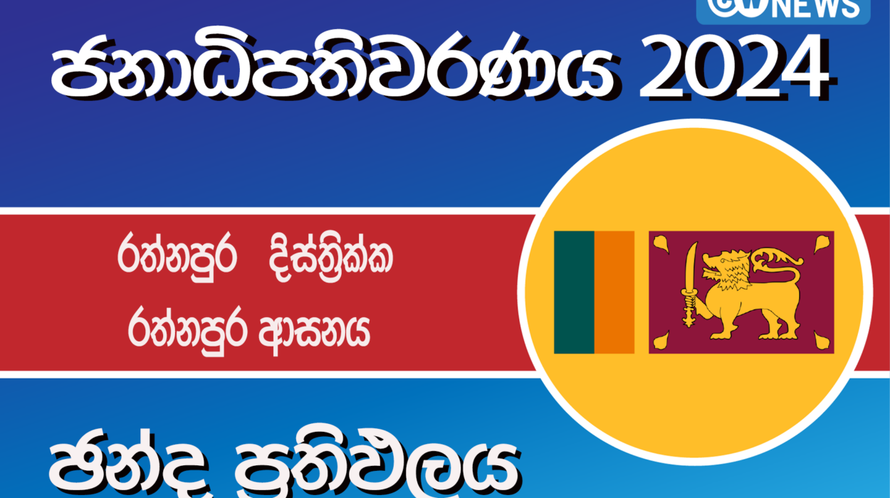 1 year ago Tags #ceylonwire රත්නපුර දිස්ත්රික්කය – කලවාන ආසනය අනුර කුමාර දිසානාය – 19,850 – 35.46% සජිත් ප්රේමදාස – 19,683 – 35.16% රනිල් වික්රමසිංහ – 11,972 – 21.39% නාමල්