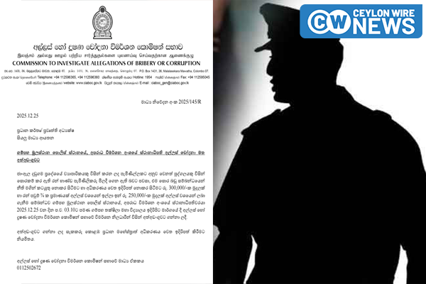 2 hours ago Tags #ceylonwire ලක්ෂ 3ක සහ රන් පවුම් තුනක අල්ලසකට ගම්පහ මූලස්ථාන පොලිසියේ අපරාධ අංශයේ OIC අත්අඩංගුවට ගම්පහ මූලස්ථාන පොලිසියේ අපරාධ අංශයේ ස්ථානාධිපතිවරයා අල්ලස් චෝදනා මත අත්අඩංගුවට ගෙන ඇති බව අල්ලස් හෝ දූෂණ චෝදනා විමර්ශන කොමිසම පවසයි.