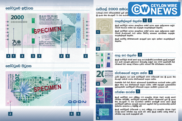සිය 75 වැනි සංවත්සරය සැමරීම සඳහා නිකුත් කරන ලද රුපියල් 2,000 සමරු මුදල් නෝට්ටුවේ ප්රධාන ආරක්ෂක ලක්ෂණ ශ්රී ලංකා මහ බැංකුව විසින් ප්රකාශයට පත්කර ඇත.