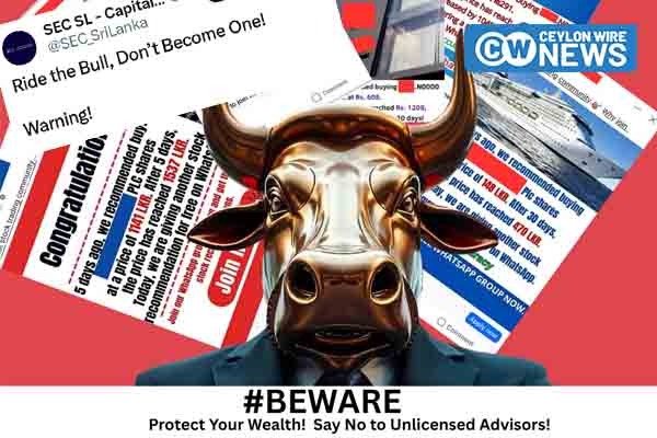 නිසි අවසරයකින් තොරව සමාජ මාධ්යවල ආයෝජන ආශ්රිත කරුණු ප්රකාශයට පත් කිරීම සම්බන්ධයෙන් ශ්රී ලංකා සුරැකුම්පත් හා විනිමය කොමිෂන් සභාව අනතුරු ඇඟවීමක් නිකුත් කර තිබේ.