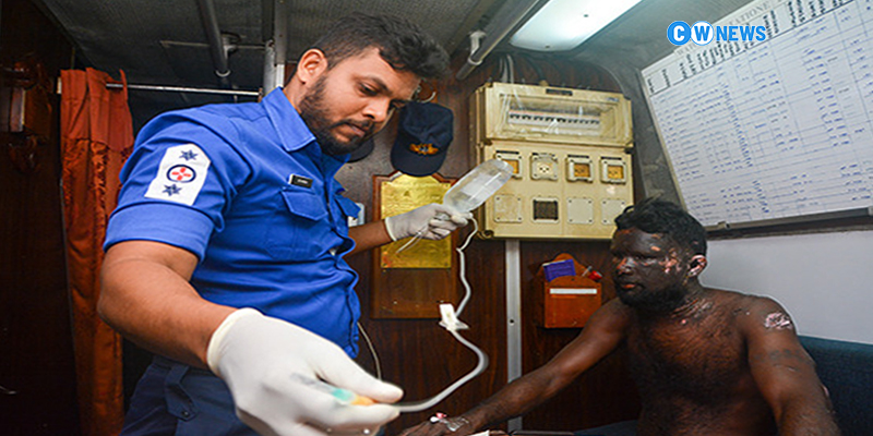 ගාල්ලේ සිට කිලෝ මීටර 798ක් නිරිත දිගින් ගැඹුරු මුහුදේ සිදු වූ අනතුරක් හේතුවෙන් පිළිස්සුම් තුවාල ලැබූ බහුදින ධීවර යාත්රාවක සිටි ධීවරයෙක් කොළඹ සමුද්රීය සෙවීම් හා මුදවගැනීම් සම්බන්ධීකරණ මධ්යස්ථානයේ සම්බන්ධීකරණයෙන් ගොඩබිමට රැගෙනවිත් ඇති අතර, නාවික හමුදාව විසින් ඔහුව ප්රතිකාර සඳහා ඊයේ (11) ගාල්ල කරාපිටිය රෝහල වෙත යොමු කර ඇත.