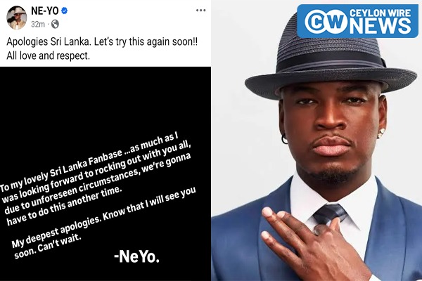 කොළඹදී පැවැත්වීමට නියමිතව තිබූ ප්රසංගය අවලංගු කිරීමෙන් පසු අන්තර්ජාතික R&B තරුවක් වන Ne-Yo ශ්රී ලාංකික රසිකයින්ගෙන් සමාව අයැද තිබේ.