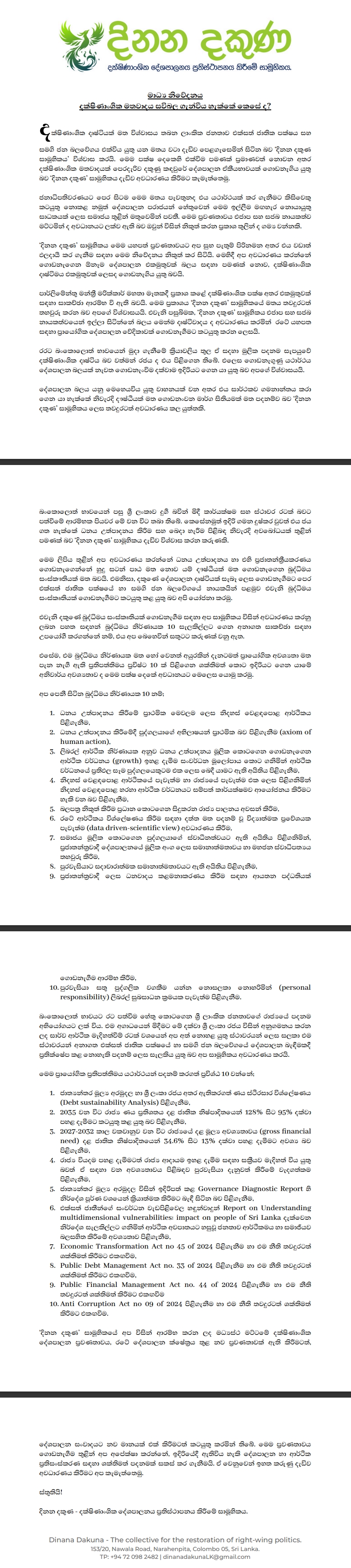 දක්ෂිණාංශික දේශපාලන ඒකීයභාවයක් ගොඩනැගීමේ අවශ්යතාව ‘දිනන දකුණ’ සාමූහිකය විසින් නිකුත් කරන ලද ජනමාධ්ය නිවේදනයක අවධාරණය කර ඇත.