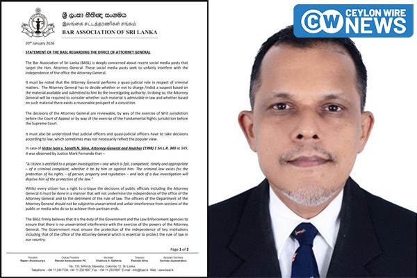 අද දින(20) නිකුත්කරන ලද විශේෂ නිවේදනයක් මගින් නීතිඥ සංගමය අවධාරණය කරන්නේ, නීතිපතිවරයා විසින් සිදුකරනු ලබන “අර්ධ-විනිශ්චයකාරී” (Quasi-Judicial) කාර්යභාරයට බාධාකිරීම නීතියේ ආධිපත්යයට එල්ල වන තර්ජනයක් බවයි.