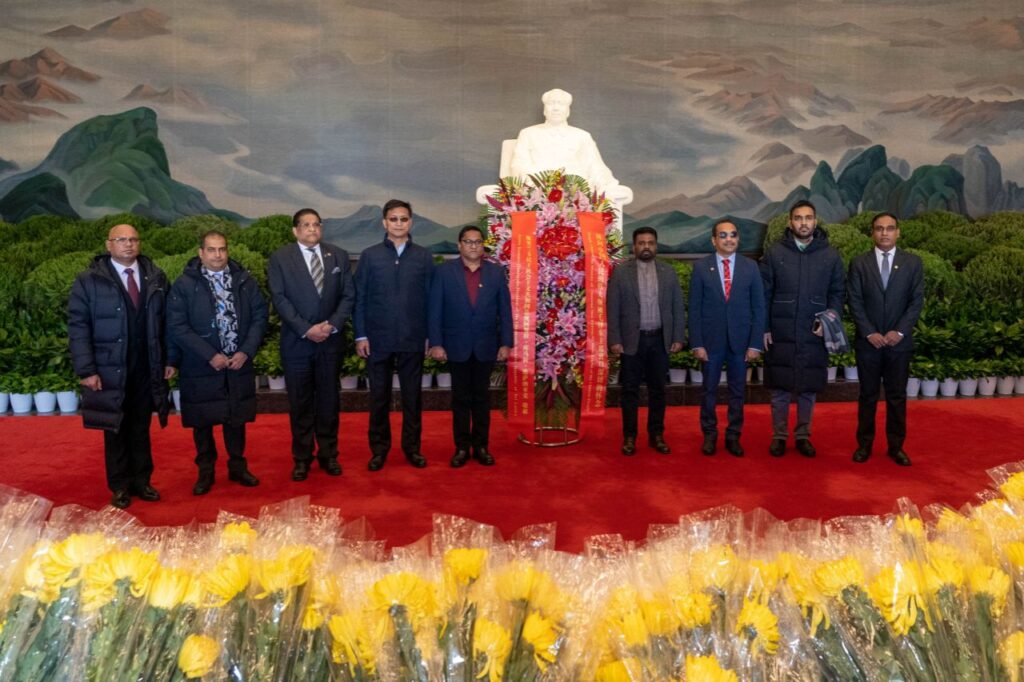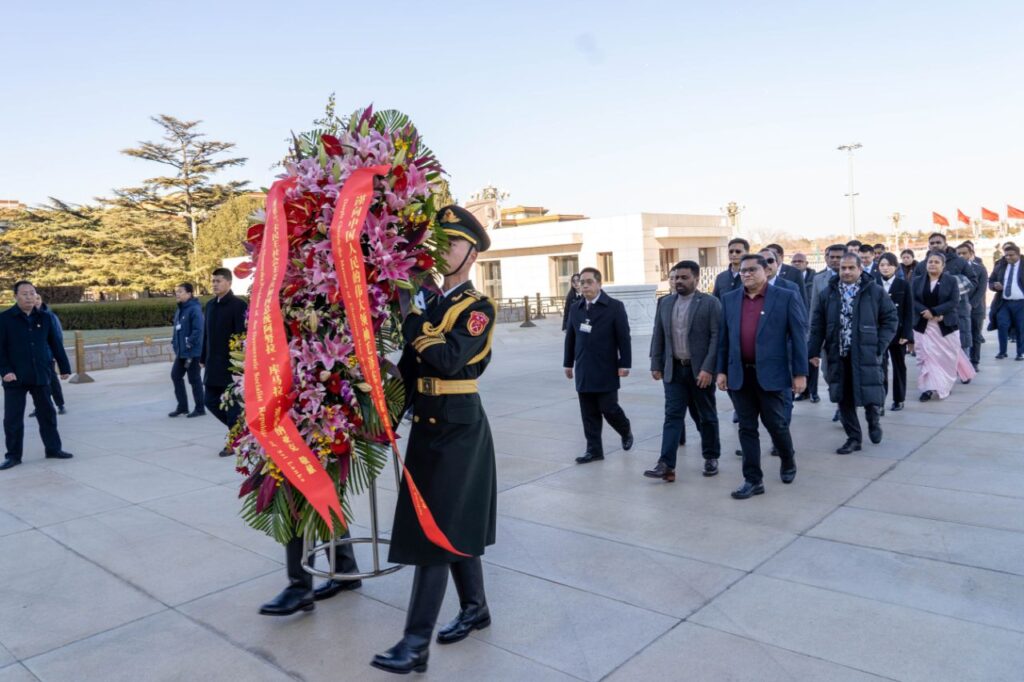 අනතුරුව මහජන චීන සමූහාණ්ඩුවේ නිර්මාතෘ සභාපති මාඕ සේතුං අනුස්මරණ ස්මාරකය වෙත පුෂ්පෝපහාර දක්වා ආචාරය දැක්වීය.