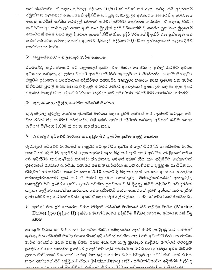 කුළුණු මත ඉදිකෙරෙන වරාය ප්‍රවේශ අධිවේගී මාර්ගයේ වරාය නගර අවසානය සහ සමුද්‍රීය ධාවන මාර්ගය අතර සම්බන්ධතාවයක් ඉදිකිරීම පිළිබඳ ශක්‍යතා අධ්‍යයනයක් සිදු කිරීම සඳහා රජය රුපියල් මිලියන 330ක් වෙන් කර ඇත.
