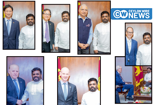 1 year ago Tags #ceylonwire ජනපති රටවල් 7ක තානාපතිවරු මහකොමසාරිස්වරු හමුවෙයි ජනාධිපති අනුර කුමාර දිසානායක අද (02) දින රටවල් 07ක තානාපතිවරුන්, මහකොමසාරිස්වරුන් ඇතුළු නියෝජිතයන් හමුවී සාකච්ඡා පැවැත්වීය. සියලු රටවල් සමඟ ද්විපාර්ශ්වික