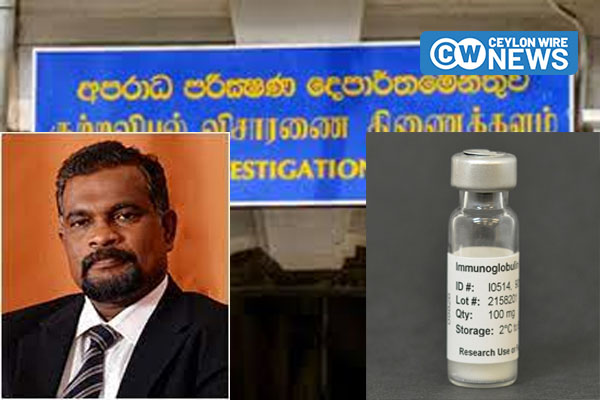 ආන්දෝලනාත්මක ඉමියුනොග්ලොබියුලින් (Immunoglobulin) එන්නත් ආනයනය කිරීමේ සිද්ධිය සම්බන්ධයෙන් අපරාධ පරීක්ෂණ දෙපාර්තමේන්තුව (CID) මුදල් අමාත්යාංශයේ ලේකම් මහින්ද සිරිවර්ධන ඇතුළු නිලධාරීන් තිදෙනෙකුගෙන්