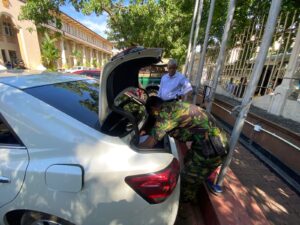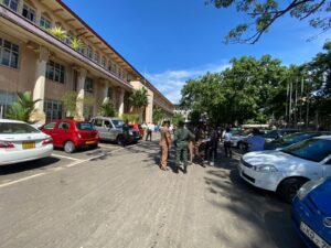 දිස්ත්රික් ලේකම් කාර්යාලයට වාහනවලින් පැමිණෙන නිලධාරීන්ට හා සේවකයන්ට වාහම තම තමන්ගේ වාහන අසළට පැමිණෙන ලෙස ද පොලීසිය දැනුම් දී තිබිණි.