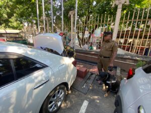 දිස්ත්රික් ලේකම් කාර්යාලයේ නිල විද්යුත් තැපැල් ලිපිනයට යොමුකර තිබූ පණිවිඩය සම්බන්ධයෙන් දිස්ත්රික් ලේකම්වරයා පොලීසියට කළ දැනුම් දීමකට අනුව සිදු කෙරුණු සෝදිසි මෙහෙයුමට පොලිස් නිල සුනඛයන්ද යොදා ගෙන තිබිණි.