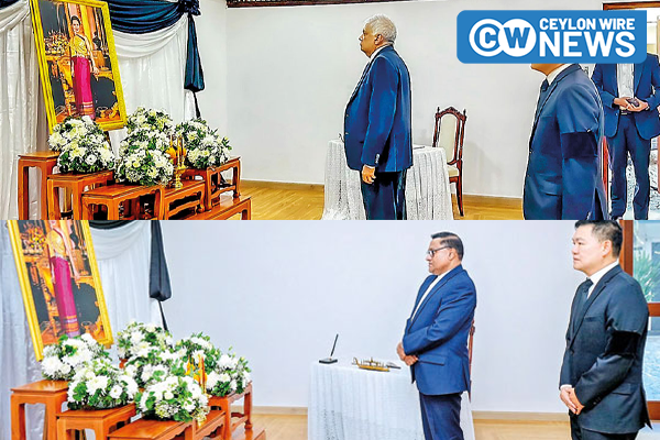 ඔක්තෝබර් 25 වැනි දින අභාවප්‍රාප්ත වූ සිරිකිත් රැජින වෙනුවෙන් විවෘත කරන ලද කොළඹ තායිලන්ත තානාපති කාර්යාලයේ ශෝක ප්‍රකාශ පොතට හිටපු ජනාධිපති රනිල් වික්‍රමසිංහ අත්සන් තැබීය.